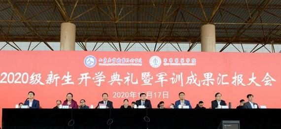10月17日下午,山東商院、齊魯醫(yī)藥學院商學院2020級新生開學典禮暨軍訓成果匯報大會在校本部體育場舉行。學校領導班子,行政部室、二級院部負責人出席,副院長徐紅主持,各學院學生教育管理工作人員、2020級全體新生參加。
