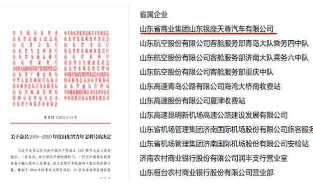 近日,“2019—2020年度山東省青年文明號”集體評選結(jié)果揭曉,山東銀座天尊汽車有限公司(以下簡稱銀座天尊)榜上有名。
