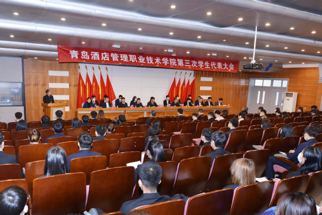 12月5日,青島酒店學院召開第三次學生代表大會,學院副院長宮恩龍參加開幕式。