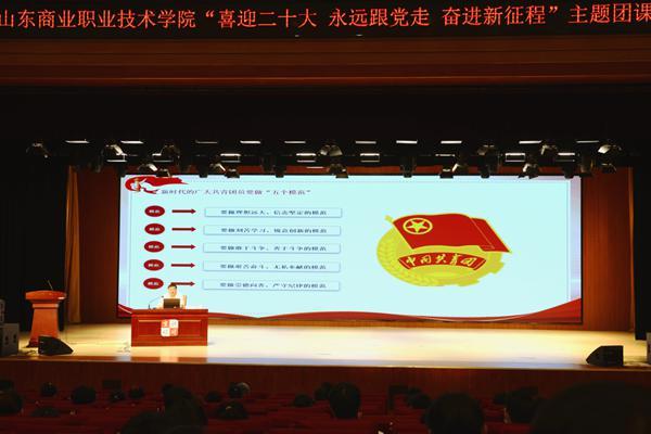 5月27日,山東商院舉辦“喜迎二十大 永遠跟黨走 奮進新征程”主題團課。學院黨委書記張志東以《堅定信念跟黨走揚帆起航新征程》為題,通過線上線下的方式為1000余名師生代表講授主題團課。