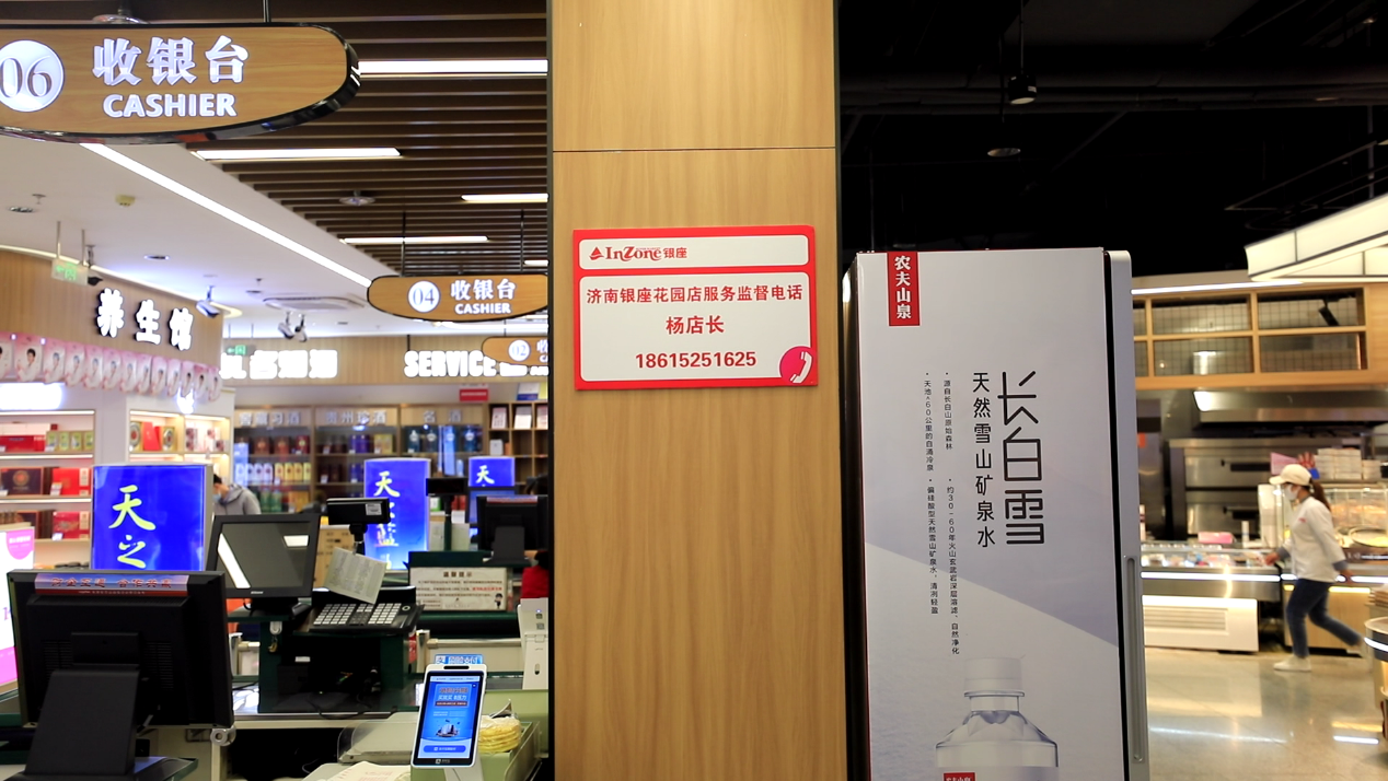這讓筆者很難相信。直到看到了他們店里一個(gè)地方:在一樓收銀處的柱子上,一串大大的電話號(hào)碼赫然醒目,上面寫著“濟(jì)南銀座花園店服務(wù)監(jiān)督電話楊店長(zhǎng)”的字樣。