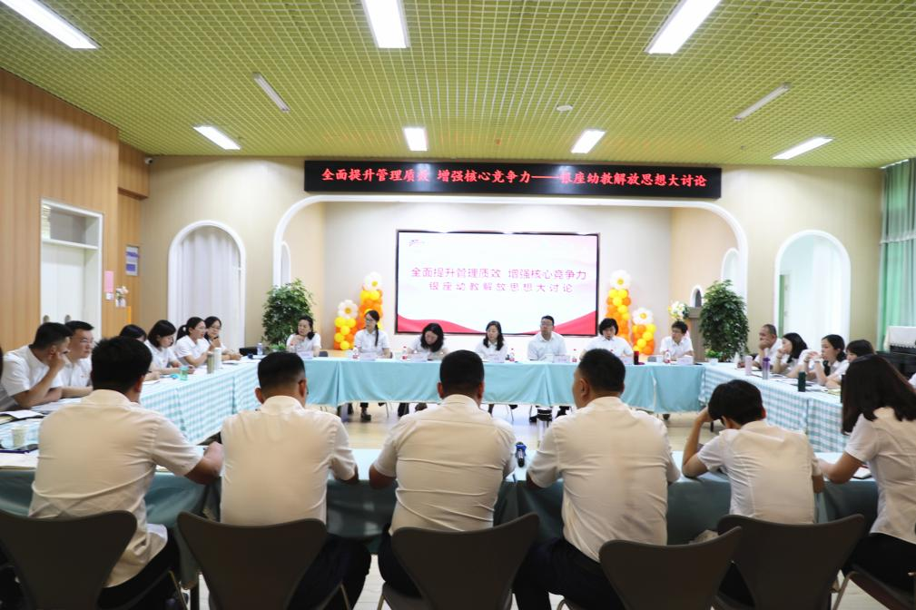 6月27日,銀座幼教開展解放思想大討論,黨委書記、董事長袁霞出席會議。