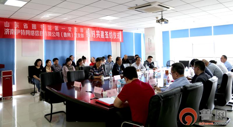 讀書強國,共創先鋒。5月14日上午,濟南伊特網絡信息有限公司(魯網)黨支部與山東省圖書館(以下簡稱省圖)第一黨支部簽署結對共建協議。會上,省商業集團有限公司(以下簡稱魯商集團)黨委常委、組織人力資源部部長李林與省圖黨委書記、館長劉顯世為魯網“東山讀書會”揭牌并講話。魯商傳媒集團黨委書記、董事長孫超,魯商傳媒集團黨委副書記、總經理、總編輯兼魯網董事長龐道鋒出席。