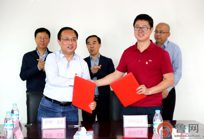 本著“學習交流、共同提高、雙向受益”的原則,省圖第一黨支部書記吳金敦與魯網黨支部書記陶克,分別代表雙方簽訂結對共建協議。