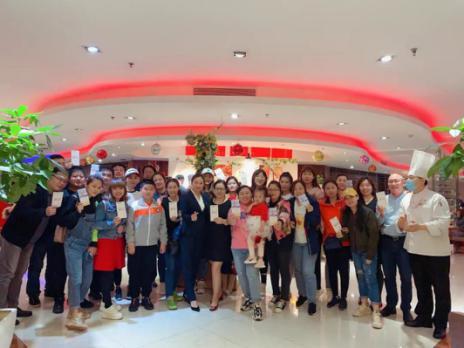 上善坊主管吳永菲得知三家醫(yī)院工作人員將前往佳悅酒店就餐后,緊急組織服務人員準備互動節(jié)目致敬白衣天使。有醫(yī)生感動地說,“進店之后感受到了酒店工作人員的熱情服務,心里暖暖的”。