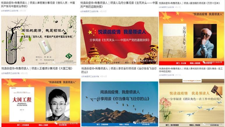 省醫(yī)工設(shè)計院黨總支積極響應(yīng)魯商集團(tuán)“新時代新使命新愿景”讀書競賽活動倡導(dǎo),大力推進(jìn)學(xué)習(xí)型組織建設(shè),結(jié)合集團(tuán)2020“創(chuàng)新年”工作要求,在全院開展“悅讀戰(zhàn)疫情,我是領(lǐng)讀人”讀書活動,引導(dǎo)全體干部職工以讀書充實(shí)內(nèi)在素養(yǎng),凝聚發(fā)展力量,堅定戰(zhàn)疫必勝的信心。