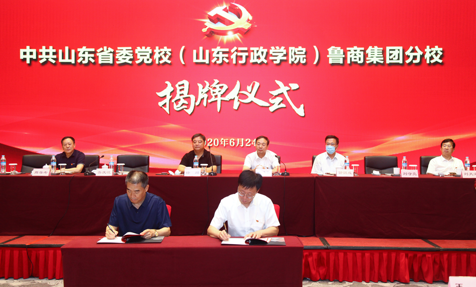 現(xiàn)場(chǎng),徐聞與高洪雷共同為省委黨校(山東行政學(xué)院)魯商集團(tuán)分校揭牌。魯慶波與李林分別代表雙方簽訂戰(zhàn)略合作協(xié)議。