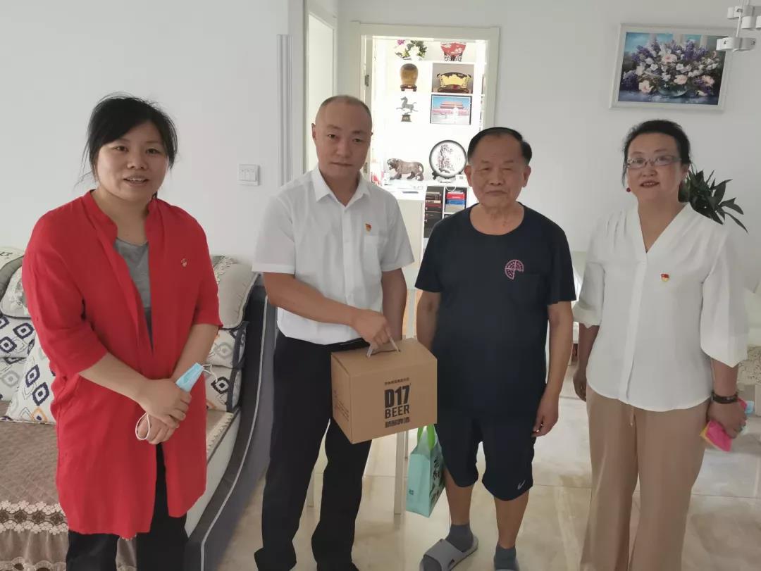 隨后,黨員志愿服務隊與社區黨總支共同走訪慰問了社區老黨員、老同志,為他們送去粽子、精釀啤酒等慰問品,并與他們親切交談,詳細了解他們的身體狀況、生活中的難題、對組織的意見和建議等,與他們共享節日的歡樂。