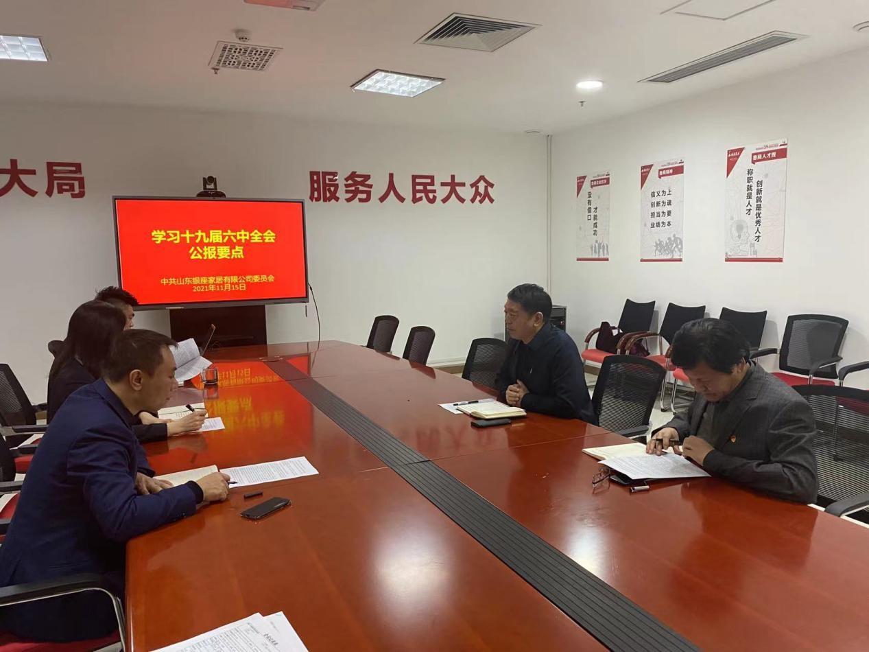 會議要求,要把學(xué)習(xí)宣傳、貫徹落實好黨的十九屆六中全會精神作為當(dāng)前和今后一個時期重要政治任務(wù),采取多種形式組織全體黨員干部學(xué)習(xí)會議精神,全力以赴完成全年各項目標(biāo)任務(wù),為銀座家居高質(zhì)量發(fā)展貢獻(xiàn)全部力量。