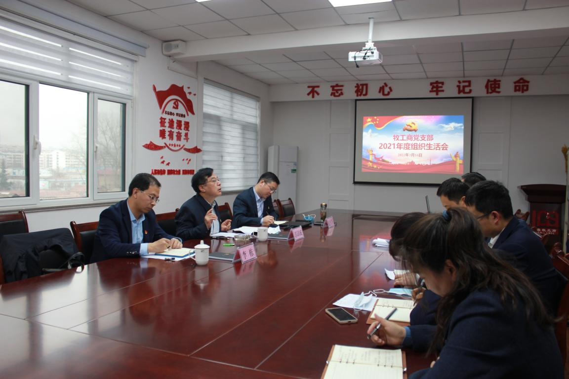 會上,牧工商黨支部書記代表支委會進行述職,匯報2020年度組織生活會整改措施落實情況、2021年黨支部工作情況以及2021年度組織生活會查擺的問題。隨后支部書記帶頭開展批評與自我批評。