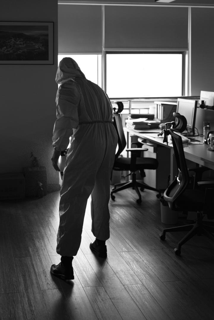 疫情發生以來,伊永利每天上班的第一項和最后一項工作,就是穿上防護服,對辦公區、電梯廳等重點區域進行消殺,并用消毒濕巾仔細擦拭門把手、呼梯盒,確保消殺無死角、全覆蓋。作為一名老黨員,47歲的伊永利以實際行動履行諾言,沖鋒在前,堅守在抗擊疫情的第一線。