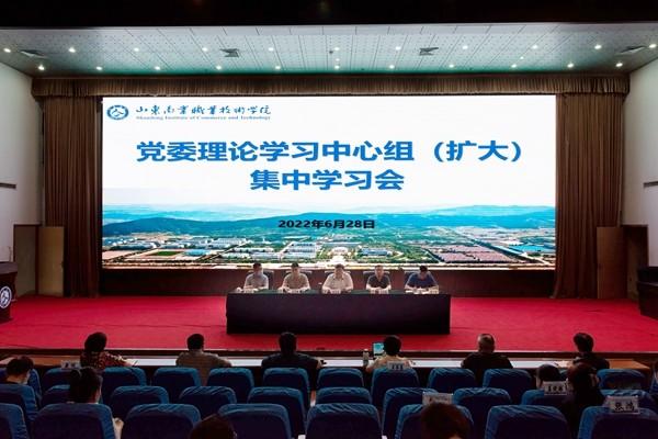 山東商院黨委理論學(xué)習(xí)中心組成員參加學(xué)習(xí)會,中層正職干部列席。