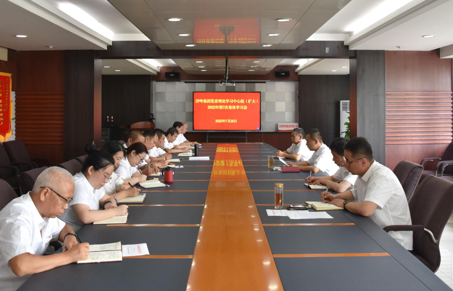 濟(jì)啤集團(tuán)黨委理論學(xué)習(xí)中心組成員參加會(huì)議,總部各部室、各產(chǎn)業(yè)園負(fù)責(zé)人列席會(huì)議。