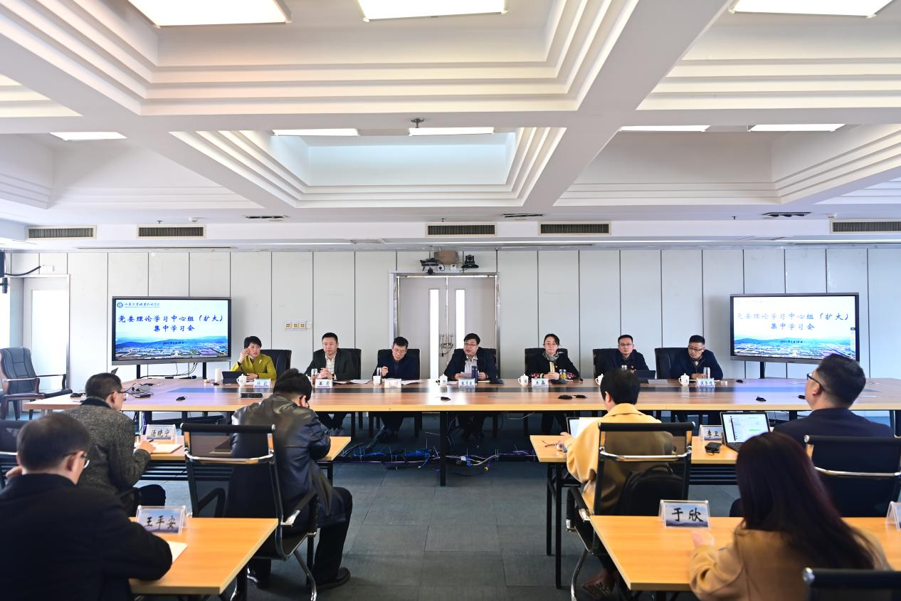 山東商院黨委理論學習中心組成員參會,中層正職領導干部列席。