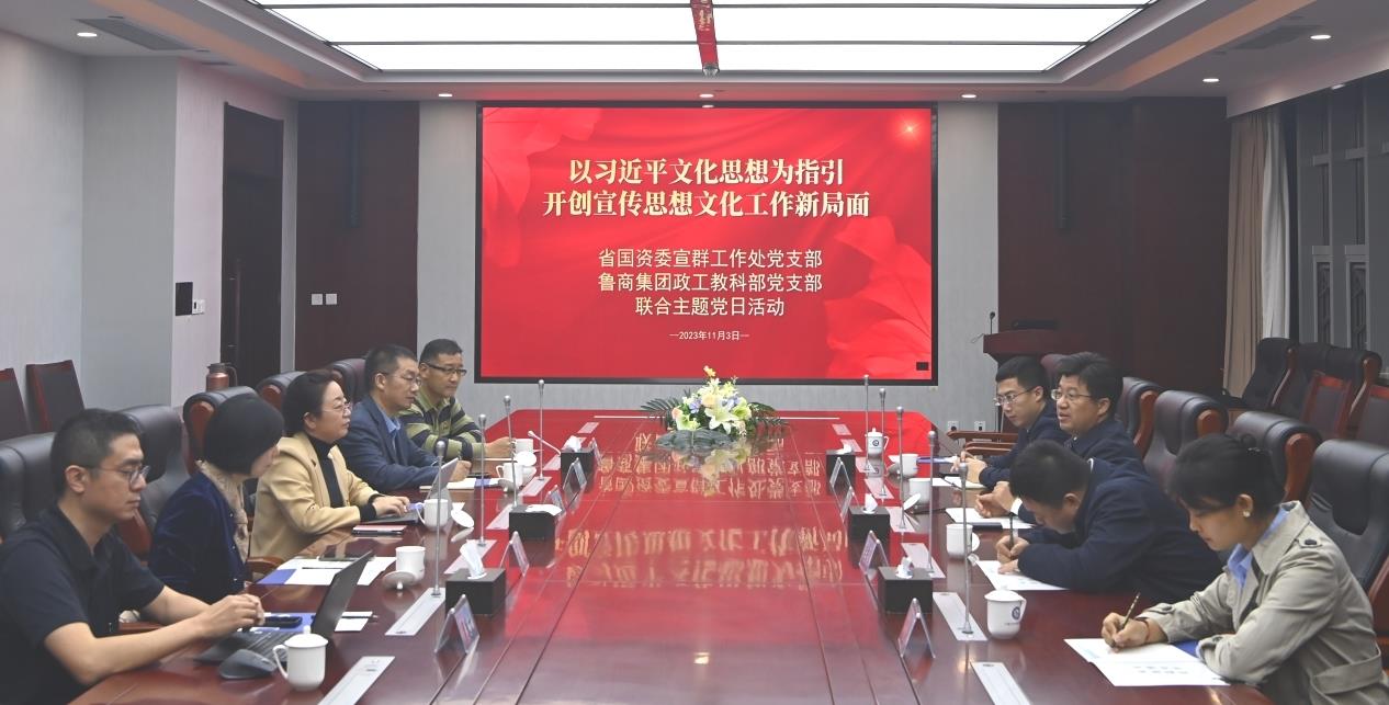 為深入學習貫徹習近平文化思想,推動宣傳思想文化工作展現(xiàn)新形象新作為,推進基層黨組織建設,進一步增強黨支部的凝聚力和戰(zhàn)斗力,11月3日,省國資委宣群工作處黨支部、魯商集團政工教科部黨支部聯(lián)合開展“以習近平文化思想為指引 開創(chuàng)宣傳思想文化工作新局面”主題黨日活動。