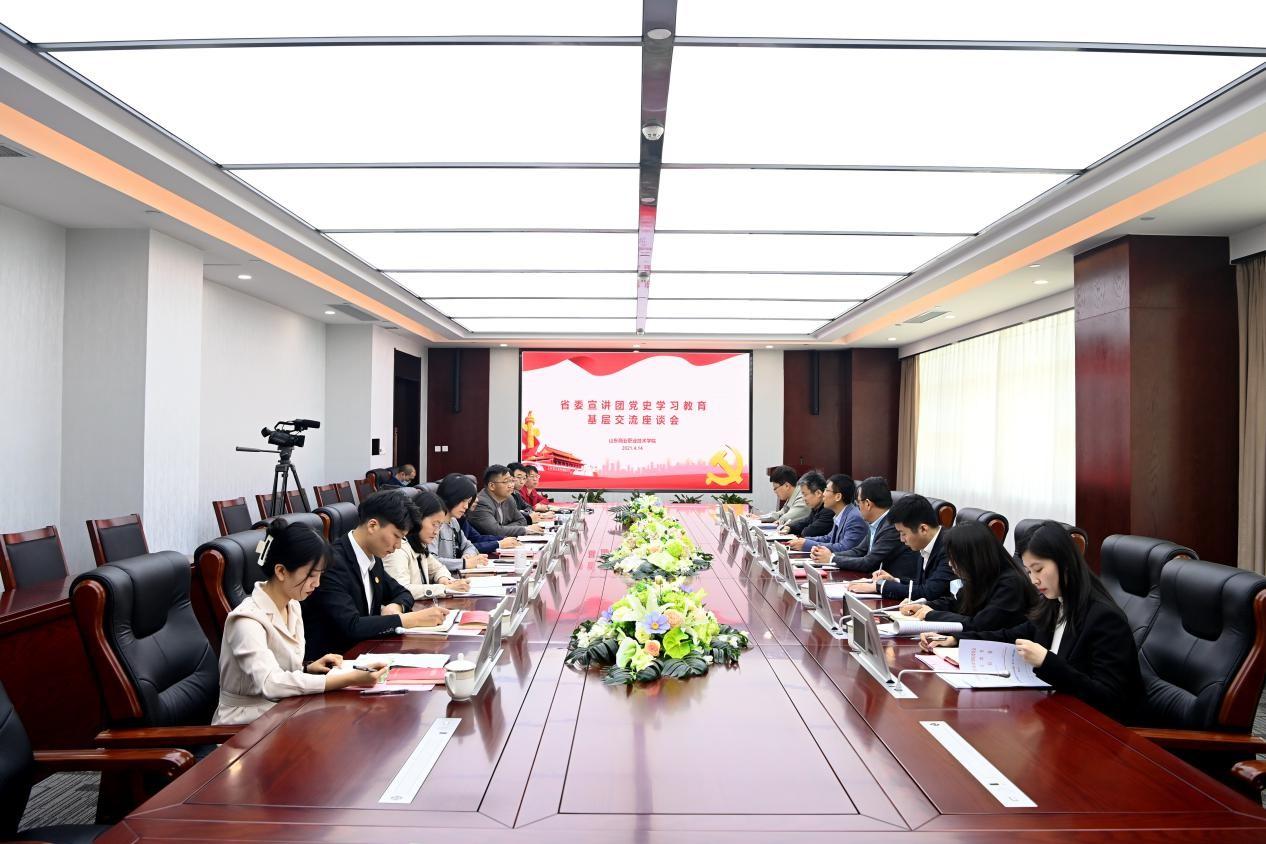 4月14日,黨史學(xué)習(xí)教育省委宣講團(tuán)成員,山東師范大學(xué)馬克思主義學(xué)院院長、教授王增福到山東商院就黨史學(xué)習(xí)教育進(jìn)行調(diào)研。基層交流座談會在現(xiàn)代服務(wù)業(yè)公共技能實訓(xùn)基地三樓會議舉行,集團(tuán)黨委副書記、董事劉守亮主持會議,集團(tuán)政工教科部部長、教育控股董事長宋超及山東電視臺、大眾日報、山東商報等媒體記者參加座談會。學(xué)校黨委副書記侯功海,組織人事部、宣傳部(教師工作部)、學(xué)生工作部(團(tuán)委)、馬克思主義學(xué)院等部門負(fù)責(zé)人及學(xué)生代表參加座談。