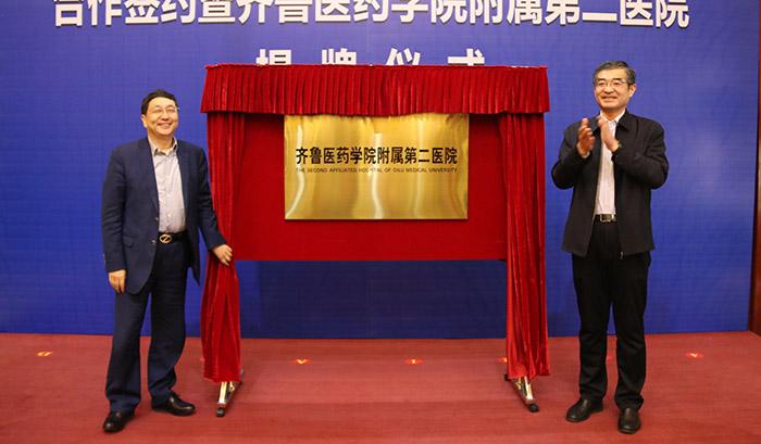 3月19日,齊魯醫藥學院與淄博市周村區政府合作簽約暨齊魯醫藥學院附屬第二醫院揭牌儀式在周村賓館舉行,淄博市副市長蓋衛星與山東省商業集團有限公司(以下簡稱魯商集團)黨委副書記、總經理凌沛學為齊魯醫藥學院附屬第二醫院揭牌,周村區委書記沙向東等領導致辭,周村區委副書記、區長劉偉與魯商集團黨委副書記、齊魯醫藥學院董事長劉守亮簽署合作協議。此舉掀開了周村區校城合作的新篇章。