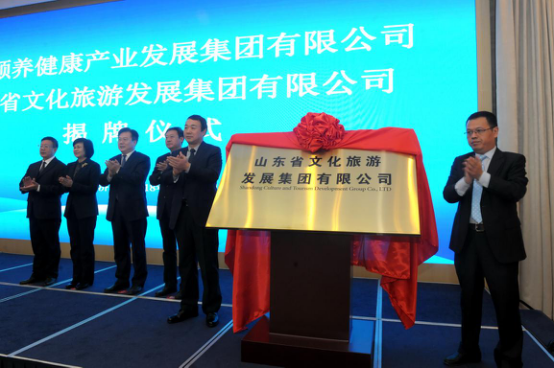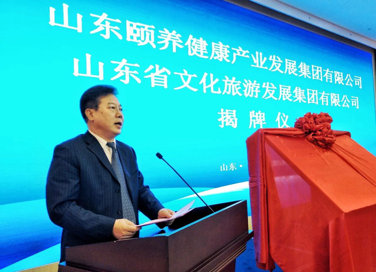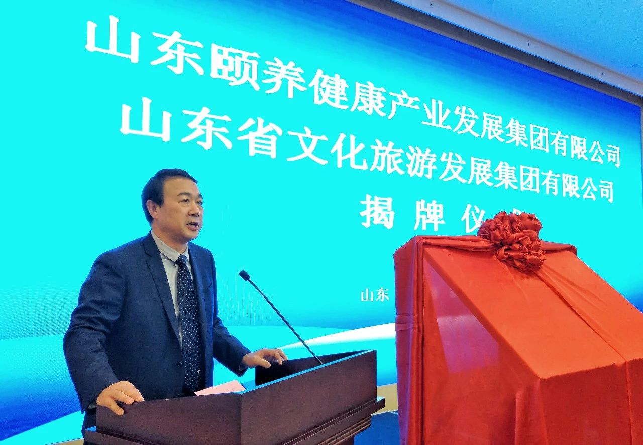 11月30日上午,山東省文化旅游發展集團有限公司(簡稱山東省文旅集團)、山東頤養健康產業發展集團有限公司(簡稱山東頤養集團)揭牌儀式在山東大廈舉行。省國資委黨委書記、主任張斌出席儀式并講話,魯商集團黨委書記、董事長高洪雷,魯商集團黨委副書記劉守亮共同為山東省文旅集團揭牌。