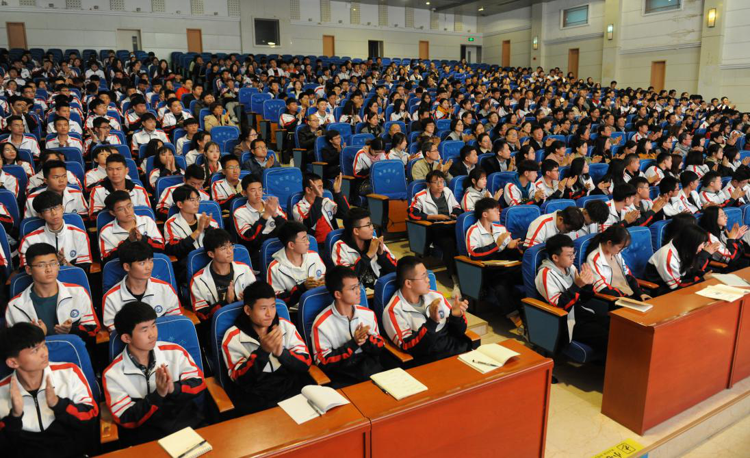 當(dāng)天的山東商院報告廳內(nèi),600余名師生濟(jì)濟(jì)一堂,認(rèn)真聆聽這場題為《放飛夢想 興我中華》的報告。高洪雷為廣大青年學(xué)子送上深情寄語,希望同學(xué)們把愛國作為永遠(yuǎn)的情懷,把歷史作為最好的老師,把讀書變成一種信仰,把創(chuàng)業(yè)作為第一選擇。
