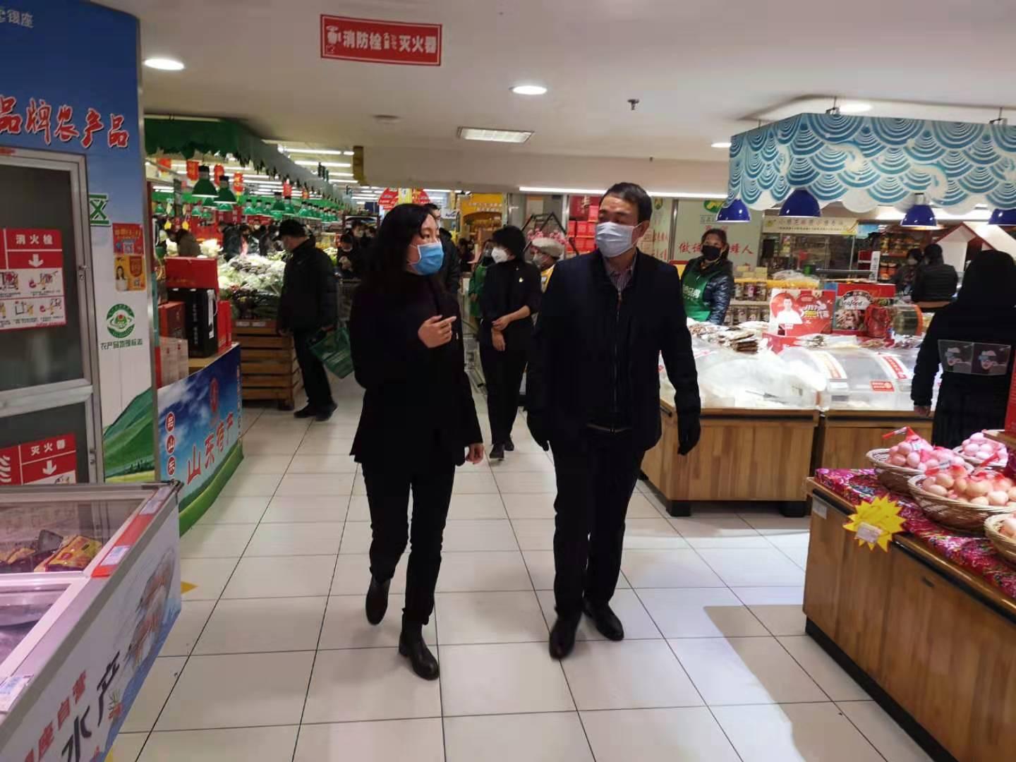按程序接受體溫測量后,高洪雷進入銀座高新店,在商場內察看了民生商品供應情況和物價情況。在暗訪快結束時,聞訊趕到的銀座高新店店長朱曉妍向高洪雷匯報了節日期間商場銷售情況、物資供應情況和下一步商品供應計劃。