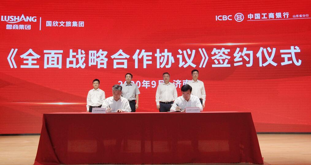 儀式現(xiàn)場(chǎng),在高洪雷、趙桂德等領(lǐng)導(dǎo)見(jiàn)證下,張志強(qiáng)、丁藝分別代表魯商集團(tuán)、省國(guó)欣文旅集團(tuán)與工行山東省分行簽署全面戰(zhàn)略合作協(xié)議。