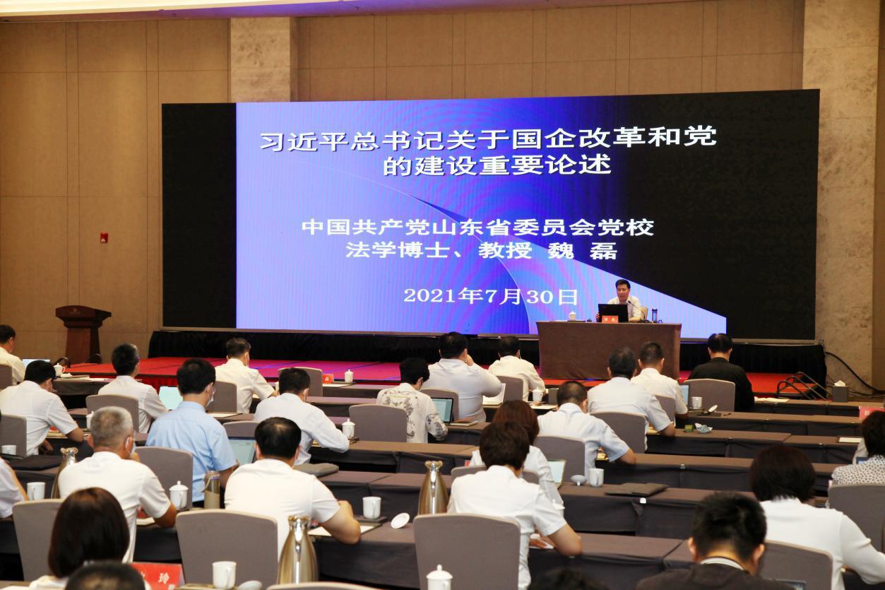 7月30日下午,第十四期“魯商文化講堂”暨集團黨委理論學習中心組(擴大)2021年第13次集體學習會召開。集團黨委副書記、總經理郭訓成,黨委副書記、董事劉守亮,黨委常委、董事、組織人力資源部部長李林,黨委常委、紀委書記、省監委駐集團監察專員劉天海,黨委常委、總審計師、工會主席劉德華出席。會上,全國黨校系統知名專家、省委黨校法學博士、教授魏磊作了《深入學習貫徹習近平總書記關于國企改革發展和黨的建設的重要論述》主題講座。
