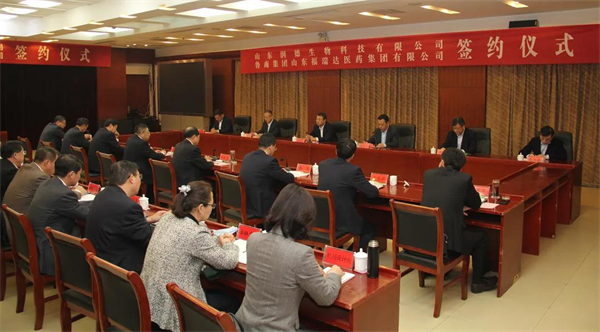 新泰市直有關單位,魯商集團辦公室、魯商發展、福瑞達、洪泰富源,潤德生物相關負責人參加簽約儀式。