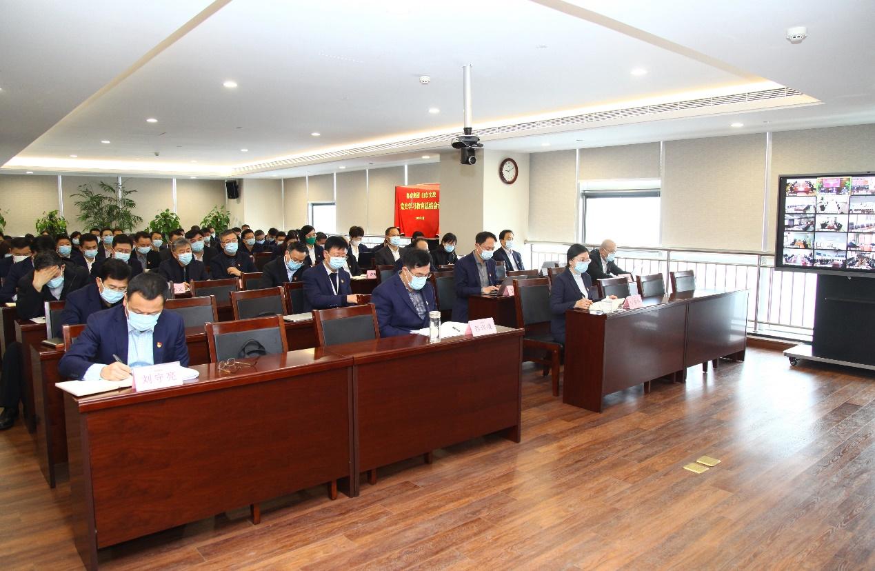 會議以視頻形式召開。兩大集團領導班子成員、黨史學習教育領導小組全體成員、總部中層干部和部分黨員代表在主會場參會,各直屬單位班子成員、黨史學習教育領導小組全體成員在分會場參會。