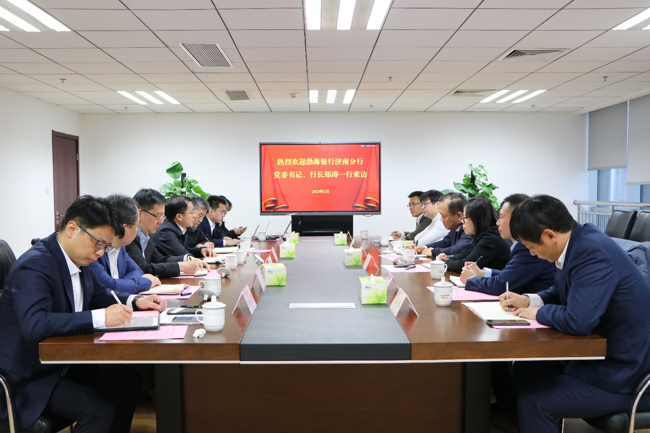 2月15日,渤海銀行濟(jì)南分行黨委書(shū)記、行長(zhǎng)鄭濤到訪魯商集團(tuán),集團(tuán)黨委副書(shū)記、董事、副總經(jīng)理朱華建熱情接待。