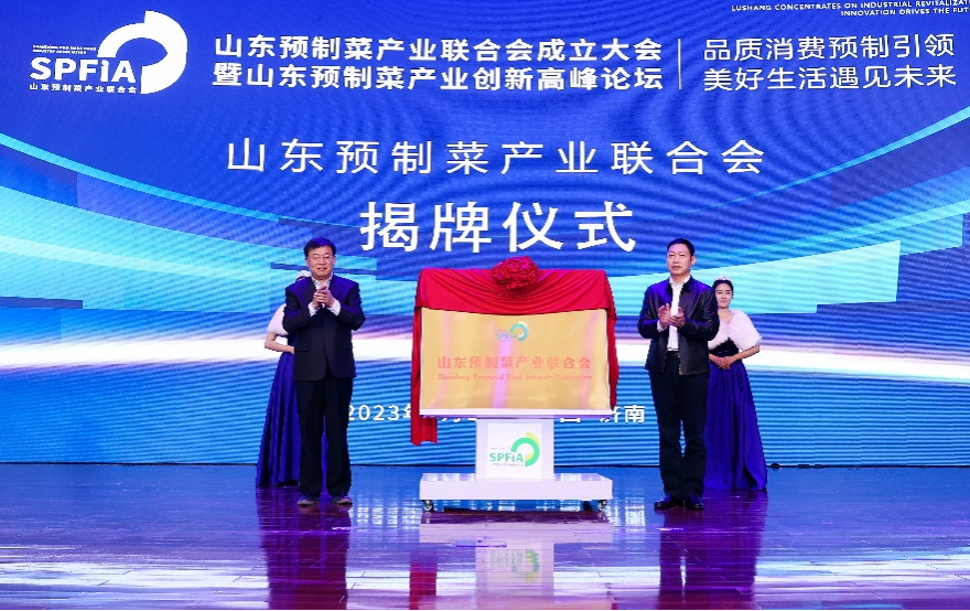 省農業農村廳鄉村產業發展處、省畜牧獸醫局畜禽屠宰管理處、山東預制菜產業聯合會、龍大美食、銀座集團、山東商院、福建省預制菜協會有關負責人共同為中國預制菜產業數字大廈揭牌。