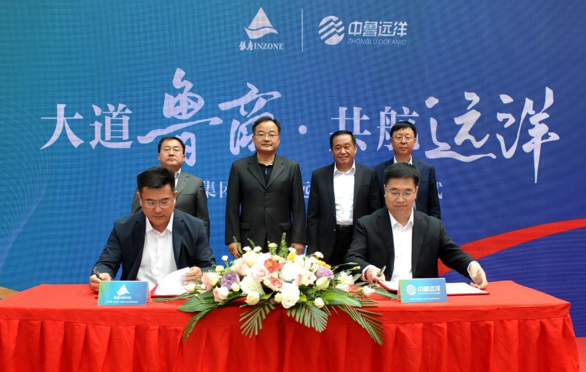 活動現場,銀座集團董事長馬云鵬、中魯遠洋總經理王歡分別代表雙方簽訂戰略合作協議書。
