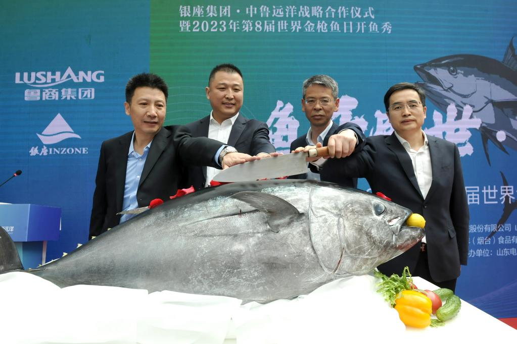 5月2日,“大道魯商?共航遠洋”銀座集團中魯遠洋戰略合作儀式暨2023年第8屆世界金槍魚日開魚秀在濟南銀座玉函店舉行。魯商集團黨委書記、董事長王緒超,黨委副書記、董事、副總經理朱華建,黨委常委、董事、組織人力資源部部長李林,山東國投黨委常委盧連興出席。