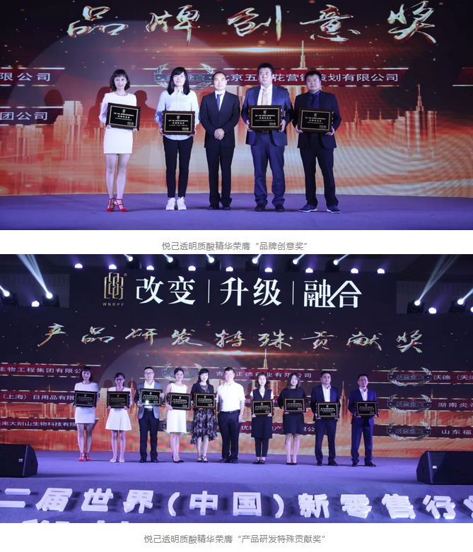 此次活動緊緊圍繞“改變 升級 融合”主題,聚焦新零售新熱點、新話題,匯集了包括福瑞達醫藥集團在內的500多位行業精英、供應商,共同探尋中國新零售發展的新機遇,把脈零售行業發展新路徑,并對新零售重要落地形態之一的直銷展開深度解讀。在頒獎典禮上,福瑞達醫藥集團憑借強大的產品研發實力、創新的發展模式以及有目共睹的產品口碑廣受贊譽,明星產品悅己透明質酸精華成功攬獲“品牌創意獎”和“產品研發特殊貢獻獎”兩項大獎。