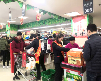 奉獻擔(dān)當(dāng)堅守一線。春節(jié)期間,銀座集團一線廣大黨員干部員工,放棄回家與親人團聚的機會,堅守崗位,確保了節(jié)日期間門店正常運營。春節(jié)客流較大,各門店二線人員主動幫扶一線,黨員、青年先鋒隊發(fā)揮模范帶頭作用,主動到款臺幫忙裝袋、輔助收銀、整理回收、指引方位等,真正做到哪里繁忙、任務(wù)重,哪里就有黨員志愿服務(wù)隊的身影。同時,各門店還在節(jié)假日提供增值服務(wù),有的成立送貨小分隊,員工主動請纓為顧客提供送貨服務(wù),受到顧客一致好評。
