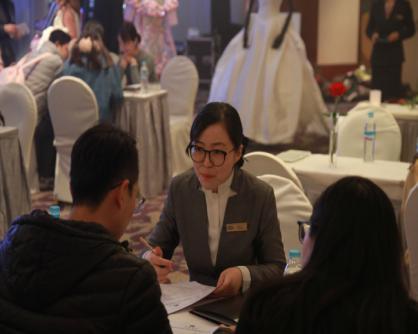 這場(chǎng)婚禮秀,從靈感碰撞、創(chuàng)意策劃到主題確定和細(xì)節(jié)敲定,都凝聚著佳悅?cè)说闹腔叟c汗水。前期,酒店團(tuán)隊(duì)曾就此召開6次專題會(huì),實(shí)施“頭腦風(fēng)暴”,研討氛圍營造,力求從顧客的需求出發(fā)創(chuàng)新出彩。為保證策劃順利推進(jìn),各項(xiàng)工作直接落實(shí)到人,還設(shè)計(jì)“配檔表”督促推進(jìn)。而面對(duì)現(xiàn)場(chǎng)每一對(duì)咨詢的準(zhǔn)新人,佳悅?cè)硕紩?huì)奉上無微不至的服務(wù)。