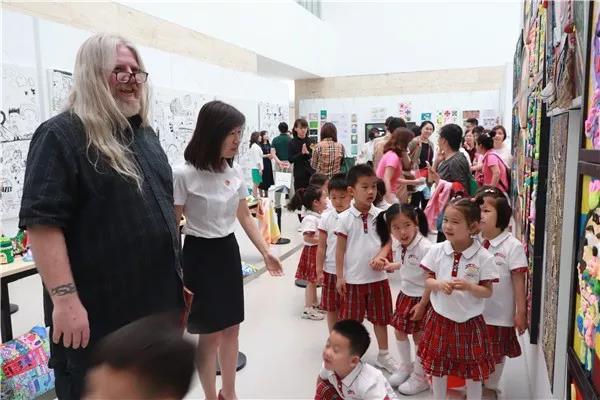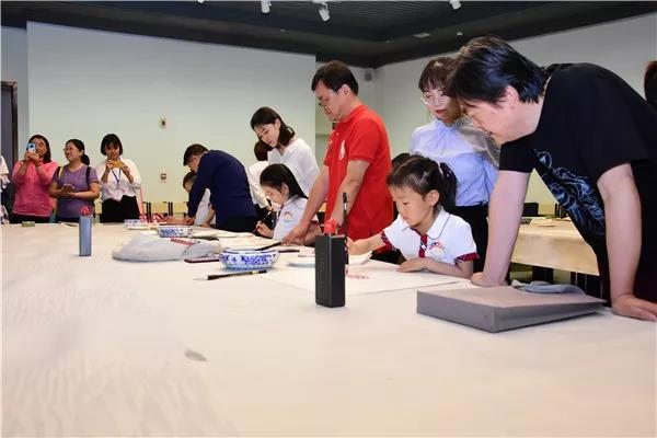 開幕式現場,十余位畫家以及來自美國、比利時的藝術家和小朋友們共同揮毫潑墨完成合作作品,來自不同國家、民族的文化交融與思維碰撞,藝術與童心、愛心與祝福的結合,讓整個開幕式顯得格外精彩而溫情。