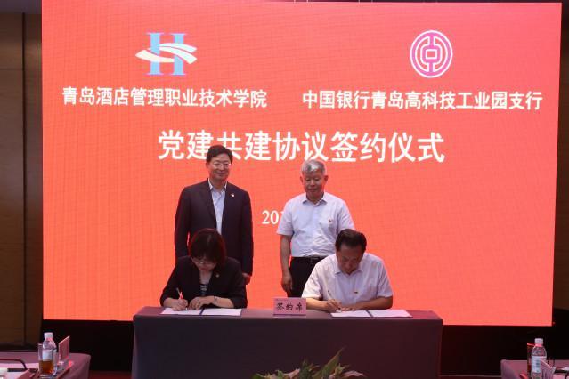 6月17日,青島酒店管理職院與中國銀行青島市分行戰略合作暨黨建共建協議簽約儀式舉行。學院黨委書記李達,黨委副書記于敏,副院長王建寶、刁洪斌,紀委書記姜玲玲,中國銀行青島市分行紀委書記付連曄,黨務工作部部長謝其善,中國銀行高科園支行副行長朱雨順、紀委書記宋萍出席簽約儀式。