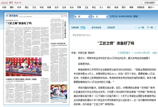 媒體報道稱,學(xué)院扎實落實教師聯(lián)系企業(yè)制度15年,全院專任教師累計完成4輪赴企業(yè)掛職鍛煉,“雙師型”教師占90%以上,高水平雙師隊伍建設(shè)取得積極成效。近年來,學(xué)院貫徹落實全國教育大會精神和《國家職業(yè)教育改革實施方案》,通過拓展雙師素質(zhì)培養(yǎng)平臺、服務(wù)企業(yè)發(fā)展和大型賽會、建立“校中廠”師資培訓(xùn)基地、積極承擔(dān)社會服務(wù)工作等,逐步打造了一支“專業(yè)在前沿、行業(yè)有影響、國際可交流”的雙師隊伍,為學(xué)院發(fā)展提供了有力支撐,也為職業(yè)教育高水平雙師隊伍建設(shè)提供了經(jīng)驗做法。