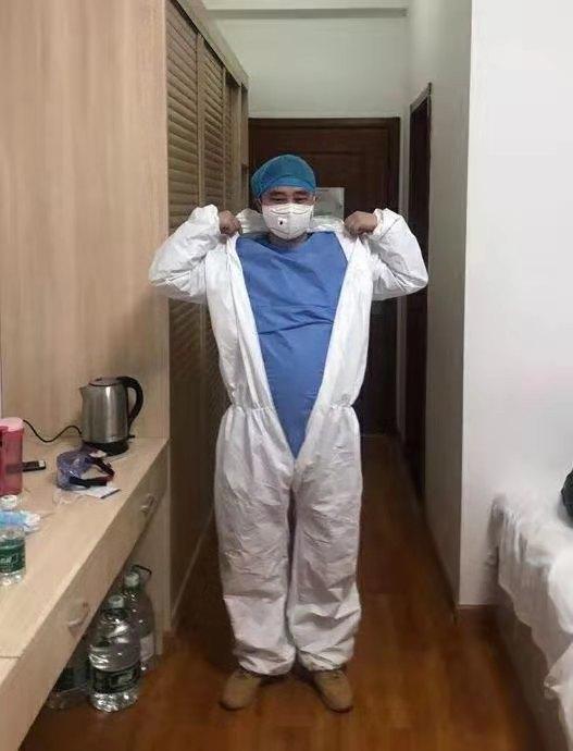 于波是齊魯醫藥學院1999級醫學影像專業學生,目前就職于滕州市人民醫院。大年初一,剛下夜班的于波來不及休息就動身前往湖北,當天晚上抵達武漢天河機場,初二凌晨3點入住黃岡酒店。從到湖北的第一天起,于波就沒有好好休息過。各種防護培訓、安全考核接踵而來,各種物資的搬運整理、各類機器的調試都需要人手。時間不等人,患者病情更不容許有一刻的耽誤。于波咬緊牙關,抓緊一切時間沖鋒在前。