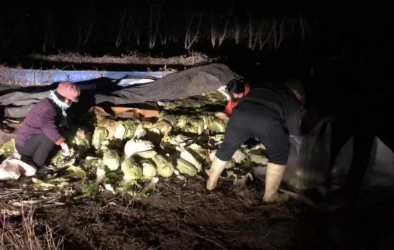 村莊封路,采購人員只能用肩挑手抬的原始方式,將菜運至村口裝車。1月28日,夜色已經降臨,他們在昌樂五圖大解召村,遇上了“攔路虎”——大土堆封路。車肯定開不過去,從下午開始飄起的小雨把道路也變得泥濘。怎么辦?丁磊打起精神,拖著疲憊的身體進村協調。不知道敲了幾家門,不知道費了多少唇舌,才打動了村里領導,讓村民開來挖掘機為運菜車放行。當挖掘機挖土的時候,團隊成員都有些心酸,但更多的,是驕傲。因為,村民被他們感動,還給他們送來了白菜、西紅柿等貨品。