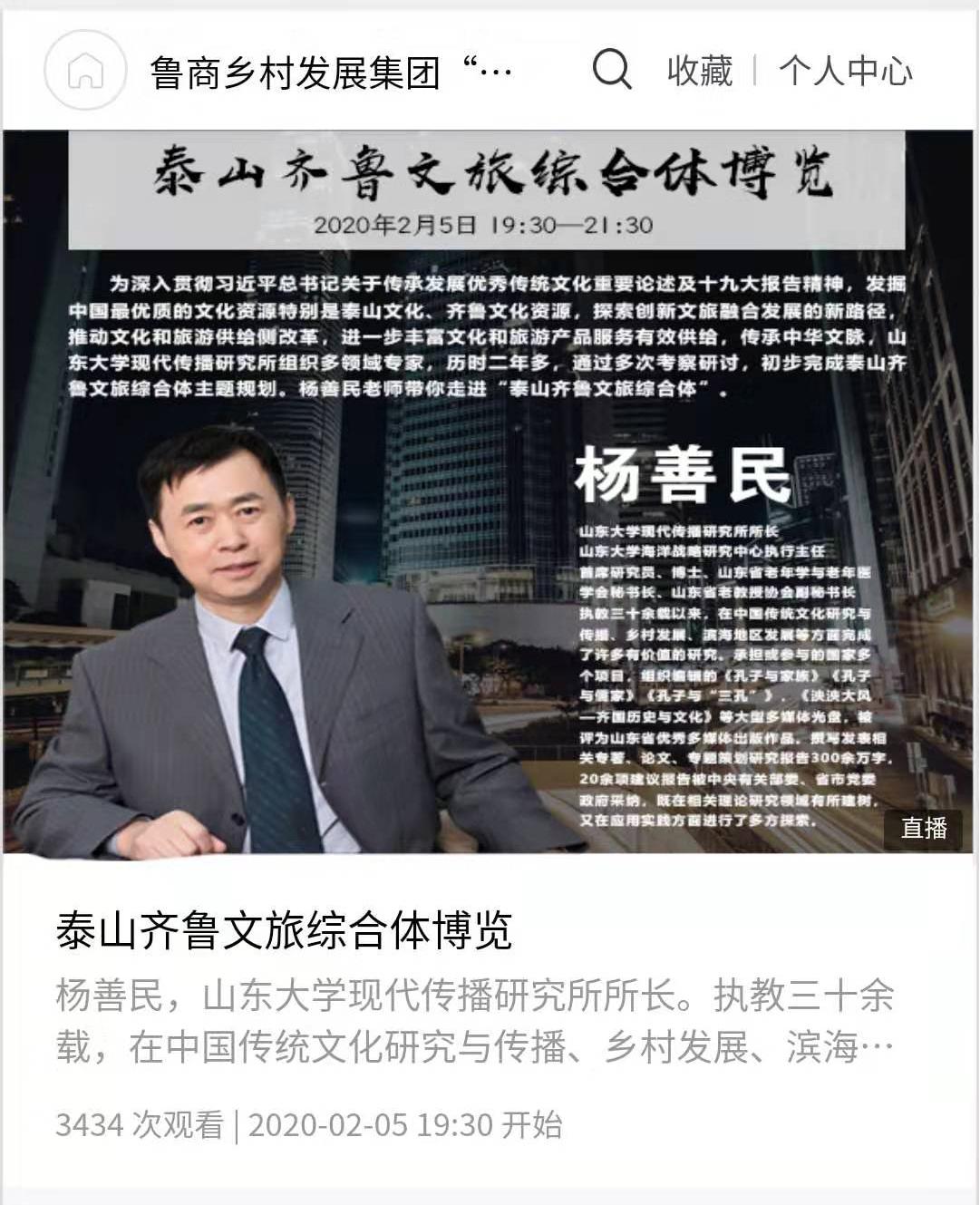 整場直播,楊善民從泰山齊魯文旅綜合體的定位和目標(biāo)、八大主題城、打造齊魯文旅“雙創(chuàng)”高地三個方面,娓娓道來,細(xì)細(xì)講解,為學(xué)員們呈現(xiàn)了一場兼具深度、氣度和維度的文化盛宴。