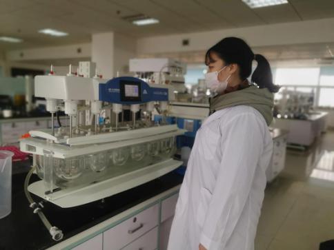 為盡快開展相關(guān)研究,封靜一接到院里立項(xiàng)通知就查資料、看專利、進(jìn)行處方設(shè)計(jì),帶領(lǐng)課題組抓緊壓制法匹拉韋片實(shí)驗(yàn)樣品,不停地進(jìn)行多種介質(zhì)溶出曲線的對(duì)比研究。為了盡快篩選出最優(yōu)的處方,加班加點(diǎn)變成了常事。周末,總能看見她和同事們?cè)谌艹鰞x旁忙碌的身影;夜深了,她獨(dú)自走在空蕩的馬路上,小區(qū)的大門早已經(jīng)緊鎖,家里的寶貝正在翹首盼望媽媽歸來……