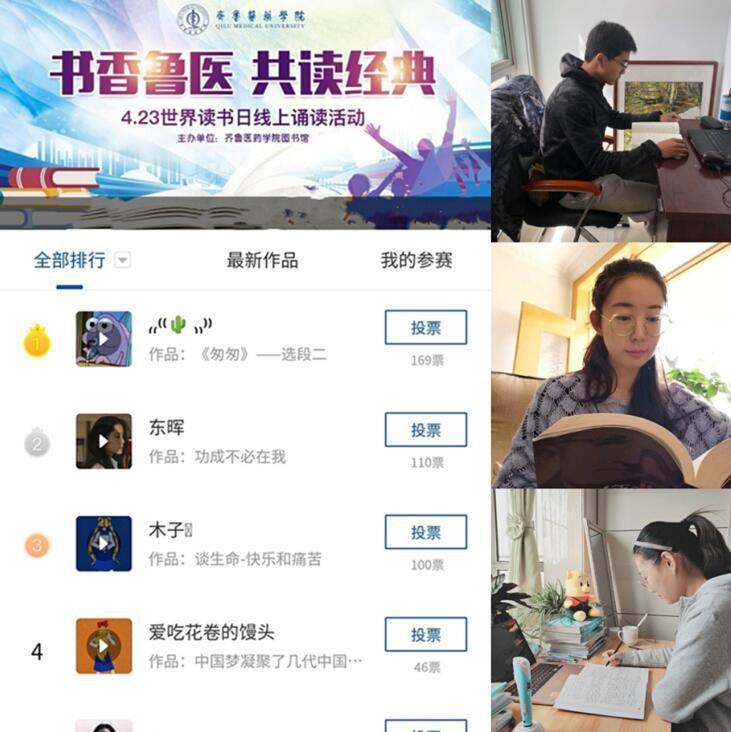 為響應集團“新時代·新使命·新愿景”讀書活動號召,充分發揮圖書館職能,大力營造全員閱讀的濃厚氛圍,在4月23日“世界讀書日”來臨之際,齊魯醫藥學院圖書館開展“書香魯醫,共讀經典”線上誦讀活動,與廣大師生“云”讀書,共沐書香。