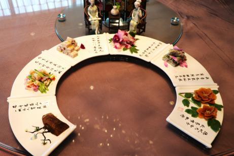 近日,在山東衛(wèi)視《我的城 我的歌》節(jié)目錄制現(xiàn)場,菏澤銀座頤庭華美達酒店廚房餐飲團隊制作的“牡丹文化宴”驚艷亮相。行政總廚張輝從思路、內容以及內涵等方面介紹了“牡丹文化宴”的創(chuàng)作過程。“先品一杯牡丹花蕊茶,清香濃郁,再嘗牡丹宴,回味悠長!”現(xiàn)場主持人和嘉賓對色香味俱佳的藝術盛宴贊嘆不已?!般y座城市酒店”巡禮之菏澤篇,帶消費者開啟一場城市生活美學的創(chuàng)意之旅。
