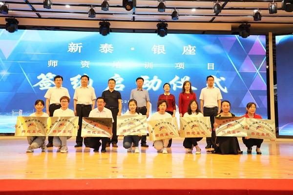 6月18日上午,新泰·銀座幼兒園師資培訓項目簽約啟動儀式舉行。省商業集團有限公司(以下簡稱魯商集團)黨委常委、董事李林,魯商集團政工教科部部長宋超,新泰市副市長周典紅,新泰市教育和體育局局長、黨組書記兼新泰一中校長王振湖,新泰市教育和體育局副局長楊福泉,銀座幼教黨總支書記、董事長袁霞,黨總支副書記、總園長孟凡庸出席。新泰市約450名幼兒園園長參會。