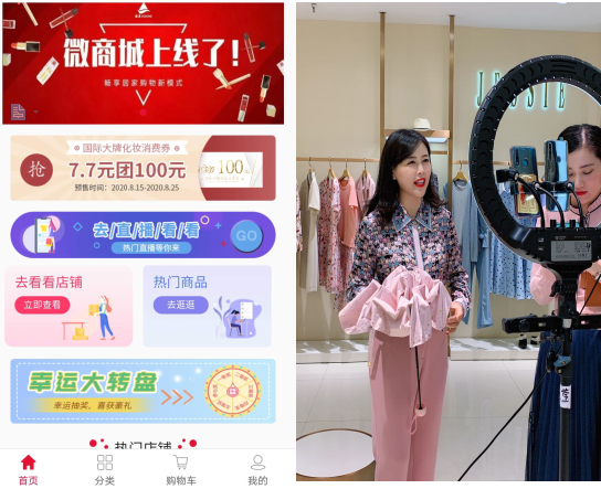 該平臺幾乎覆蓋了門店線下百貨全品類,不僅實現(xiàn)了線上展示、銷售品牌商品,還兼具直播帶貨、拼團秒殺、粉絲裂變、傭金分成等營銷功能。微商城上線以來的第一個互動活動“大轉盤抽獎”游戲,總瀏覽量就近2 萬次。同時,門店擇優(yōu)孵化了很多員工作為主播帶貨,吸引眾多粉絲在線購物,取得了不俗的銷售業(yè)績。