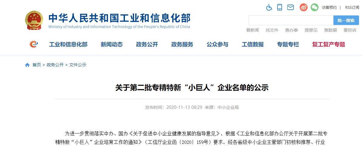 為進一步貫徹落實中辦、國辦《關于促進中小企業健康發展的指導意見》,根據《工業和信息化部辦公廳關于開展第二批專精特新“小巨人”企業培育工作的通知》(工信廳企業函〔2020〕159號)要求,經各省級中小企業主管部門初核和推薦、行業協會限定性條件論證、專家審核等流程,近日工信部中小企業局公布了通過審核的企業名單。
