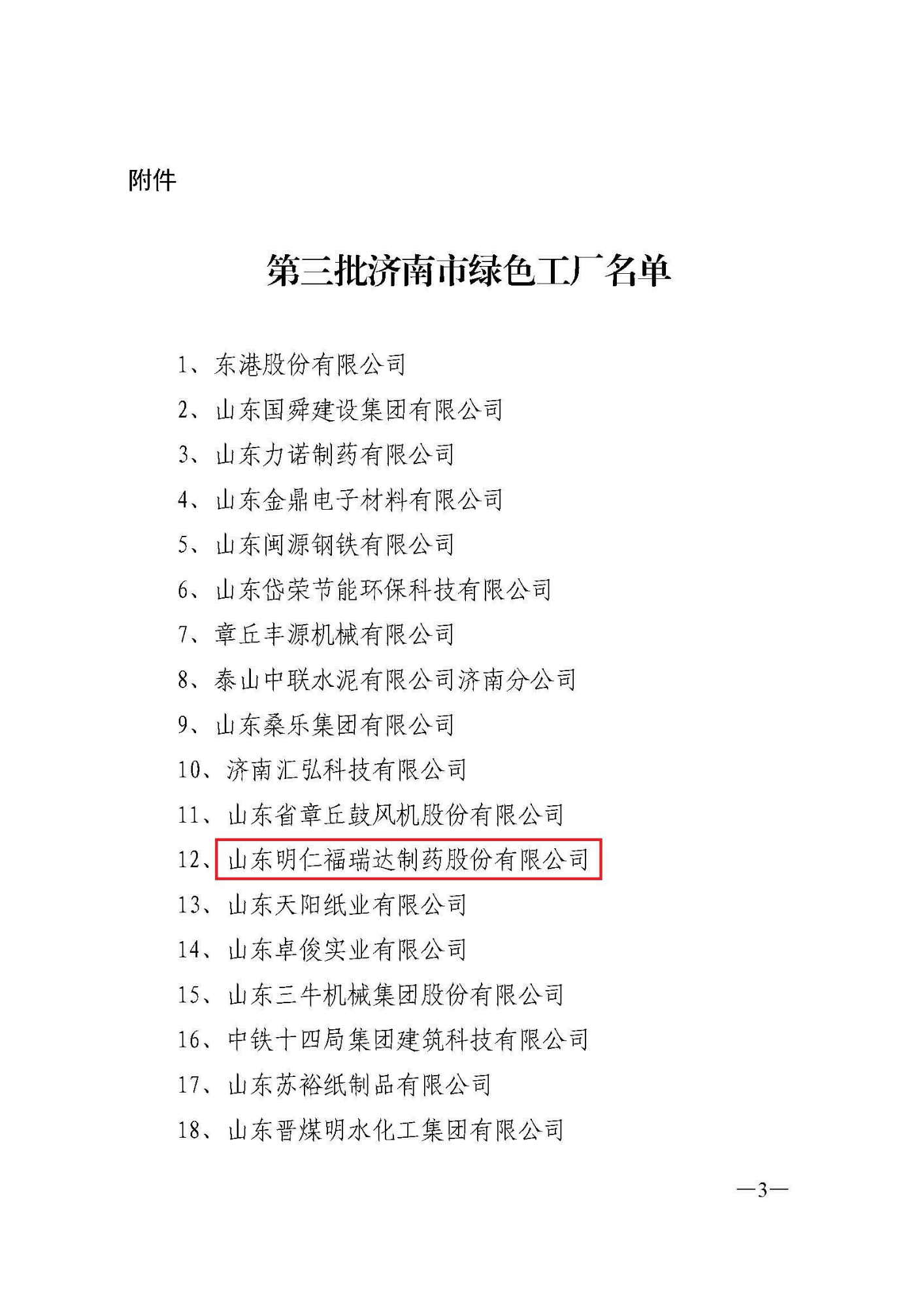 1月18日,明仁福瑞達榮登濟南市工信局公布的第三批濟南市綠色工廠名單。
