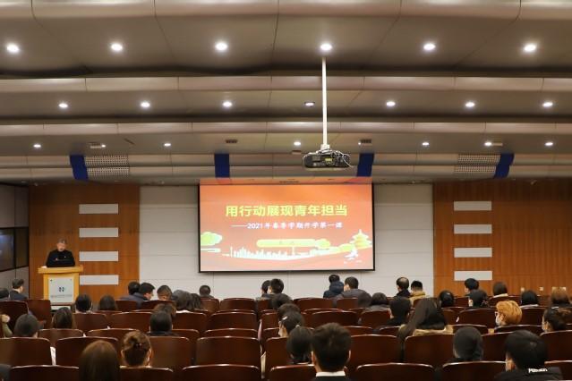 學院副院長宮恩龍主持第一課時表示,春光不負趕路人,新時代是奮斗者的時代,希望同學們牢記殷殷囑托、矢志奮斗,把個人的理想與時代的使命結合起來,不斷實現個人新的成長。