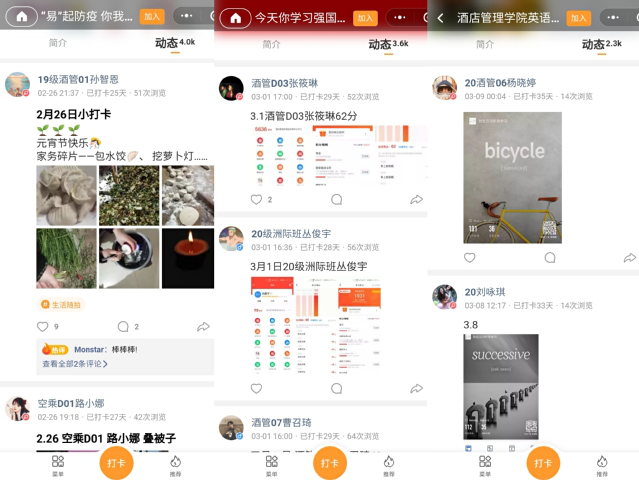 學院引導全體學生參與兩項活動,掀起一股“強國熱”和“勞動潮”,鼓勵學生隨時隨地都是課堂,時時處處都有施展舞臺。超過3600人次的學生參與到“學習強國”學習挑戰中,每日主動學習并上報分數截圖進行PK;超過4000人次的學生參與到勞動教育中,每日展示自己居家清掃衛生、做飯、洗碗等畫面,幫助父母做一些力所能及的事,在勞動中感悟父母養育之恩。